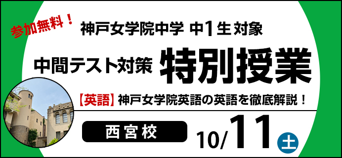 神戸女学院中学1年生を対象に、特別授業『2学期中間テスト対策(英語)』を実施致します。学校の進度、内容を考慮し、定期考査頻出問題の演習と解説を行います。ぜひこの機会をご活用いただき、万全の体制で期末考査に臨んでください!