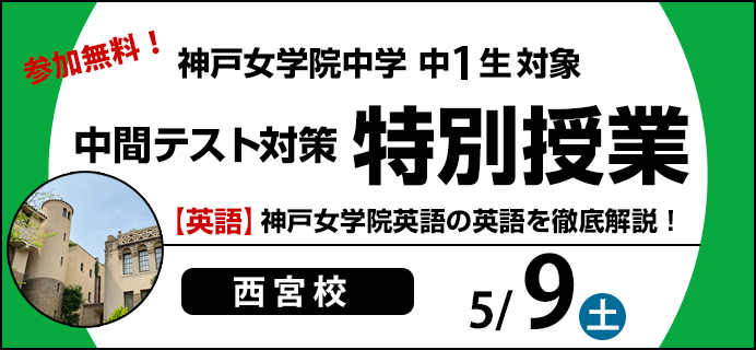 神戸女学院中学1年生を対象に、特別授業『1学期中間テスト対策(英語)』を実施致します。学校の進度、内容を考慮し、定期考査頻出問題の演習と解説を行います。ぜひこの機会をご活用いただき、万全の体制で中間考査に臨んでください!