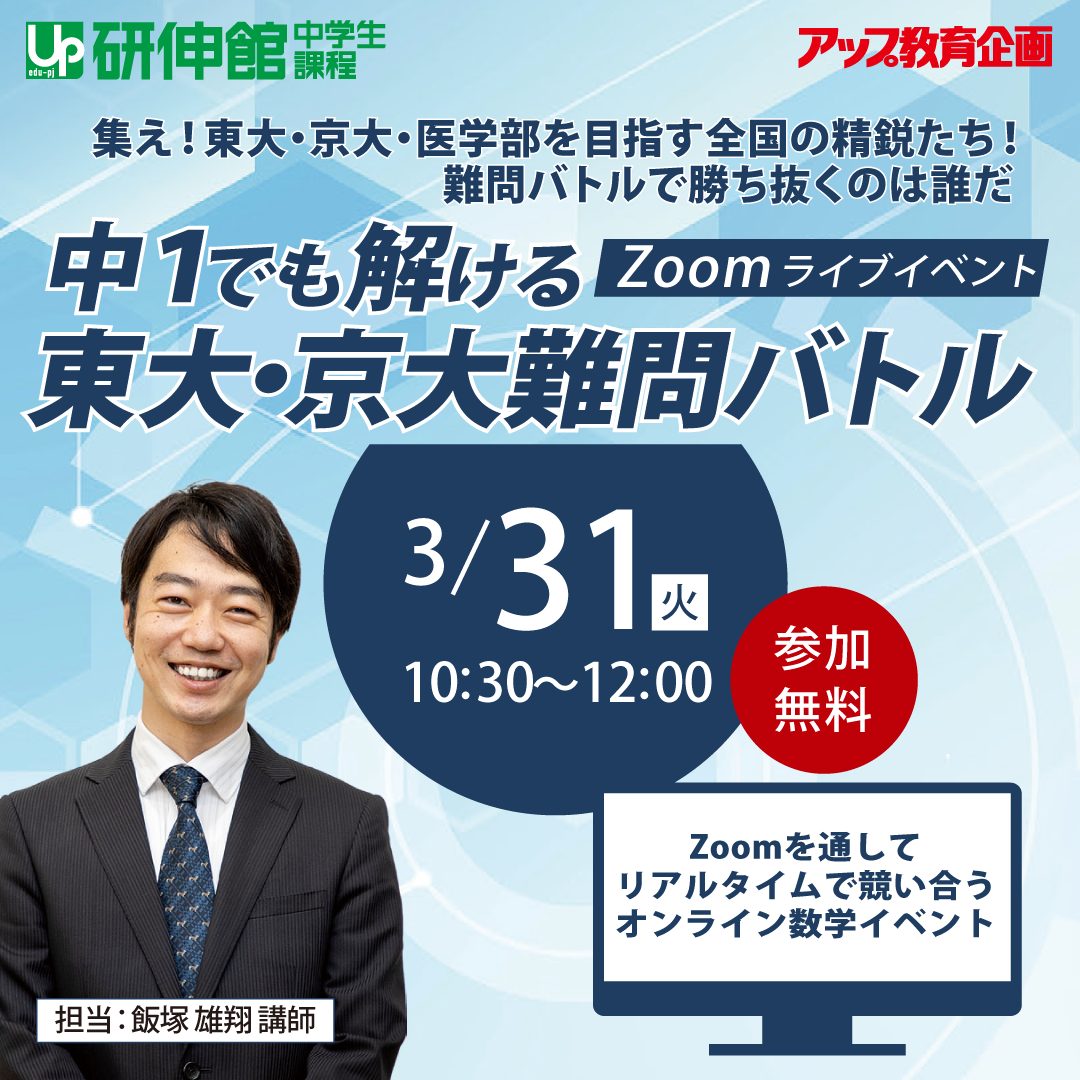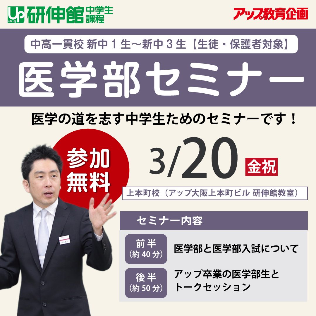 | 日程と場所 | 上本町校(アップ大阪上本町ビル 研伸館教室) 3/20 (金祝) 10:30~12:00 |