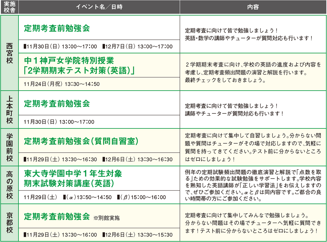 将来の難関大学合格のために、私たちは「まずは学校の勉強を大切にしてほしい」と考え、学校の学習内容を確実に定着させることを重視した指導を行います。自信を持って定期考査に臨むために、ぜひご参加ください。