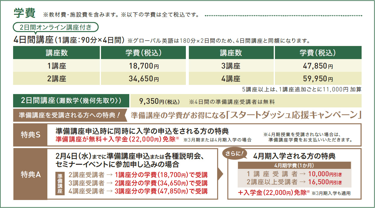 ※キャンペーンの適用条件の詳細は、各校舎にお問い合わせください。