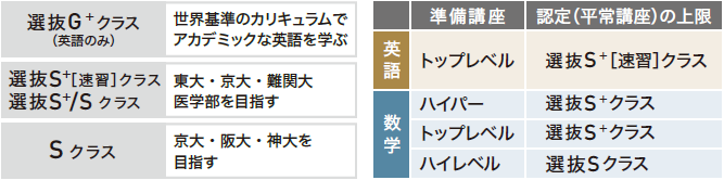 例えば、英語:トップレベル、数学:ハイレベルというように異なるクラスを受講することもできます。また、英語を第2期、数学を第3期という受講の仕方も可能です。