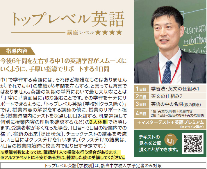 今後6年間を左右する中1の英語学習がスムーズにいくように、手厚い指導でサポートする4日間