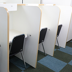 プライベートBOX型の自習机で、大型ノートを広げられるゆとりのスペースを確保。「周囲を気にせず、しかも効率的に勉強できる空間が欲しい。」そういったニーズに応える自習室を設置しています。